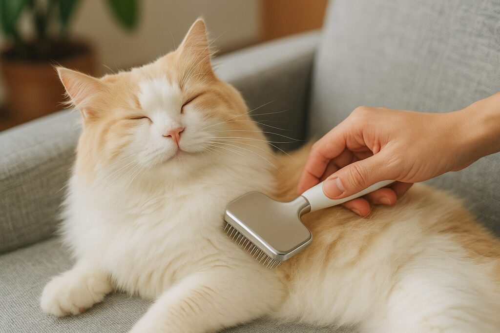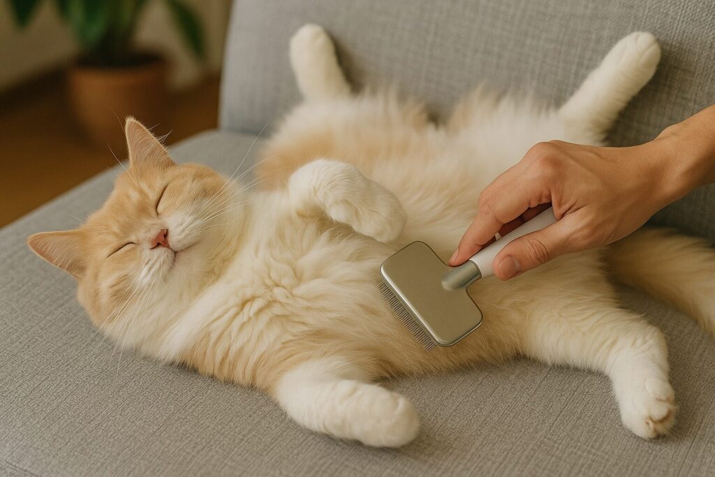 軽い力で毛玉がほぐれる快適さ と、猫がリラックスして受け入れる安心感