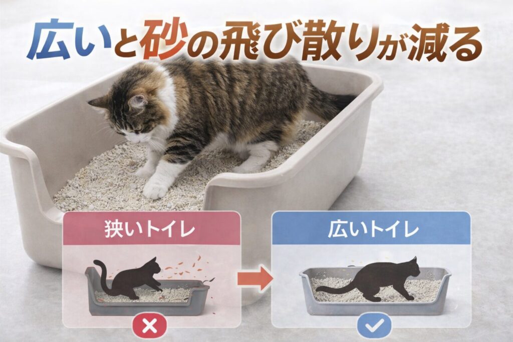 砂が飛び散る原因は、砂の性能ではなくトイレの大きさです。