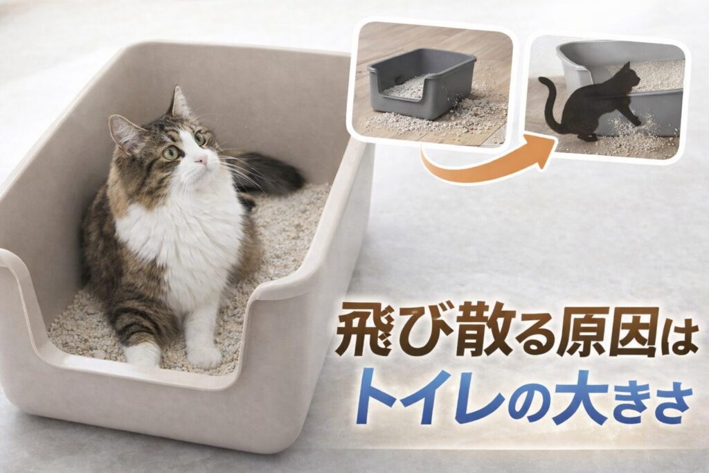 猫砂が飛び散る原因は、砂ではなくトイレのサイズ。