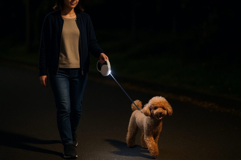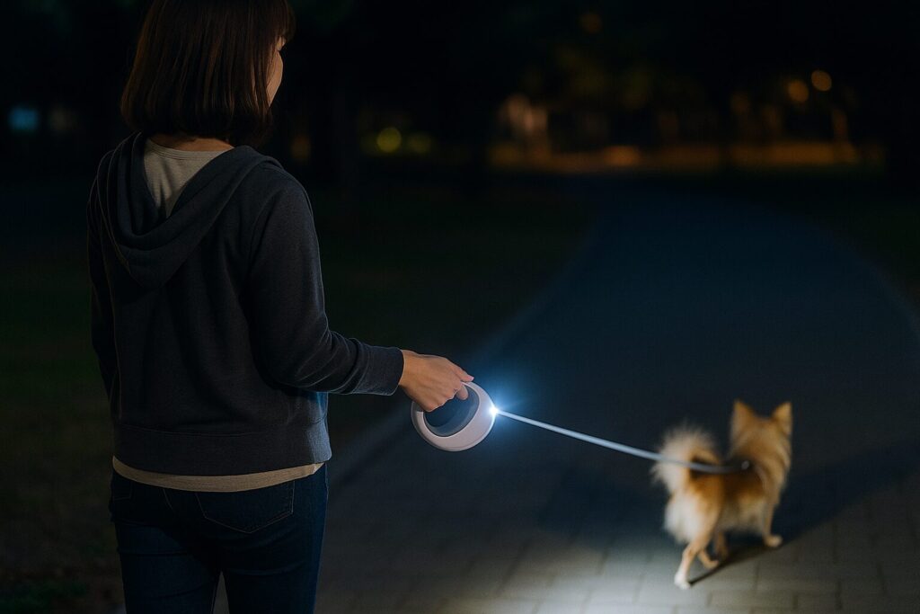 「暗い道で伸縮リードは危なくない?」