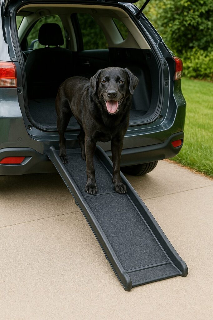 🐶「スロープがあれば僕も楽に乗れるワン!」