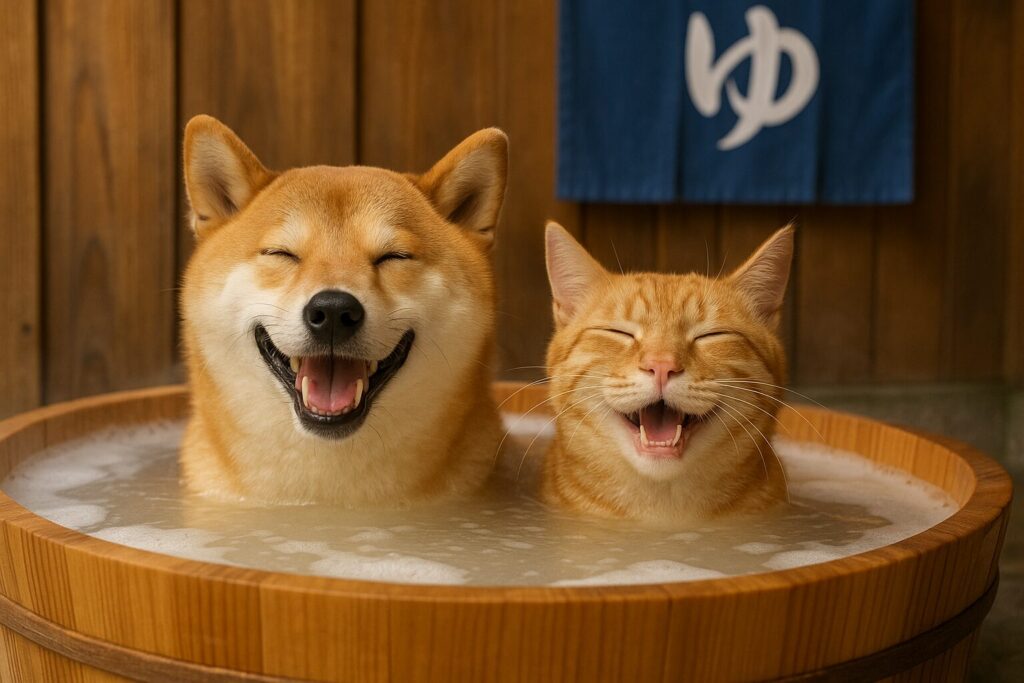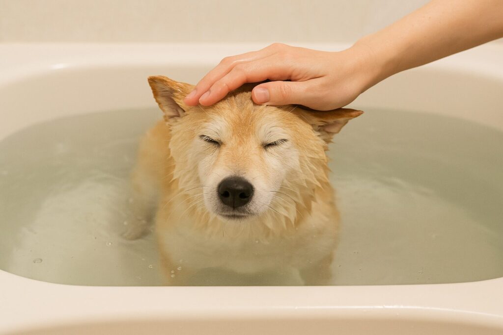 2️⃣ ペットをそっとお湯に浸ける(約5〜10分)