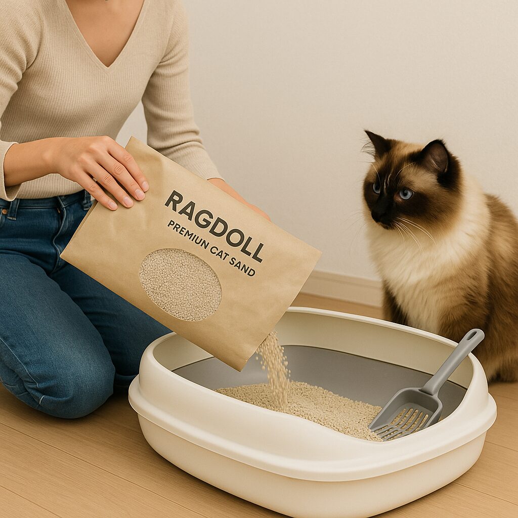 RAGDOLLプレミアムサンドは、SNSでもじわじわ人気が広がるプレミアム猫砂シリーズ。