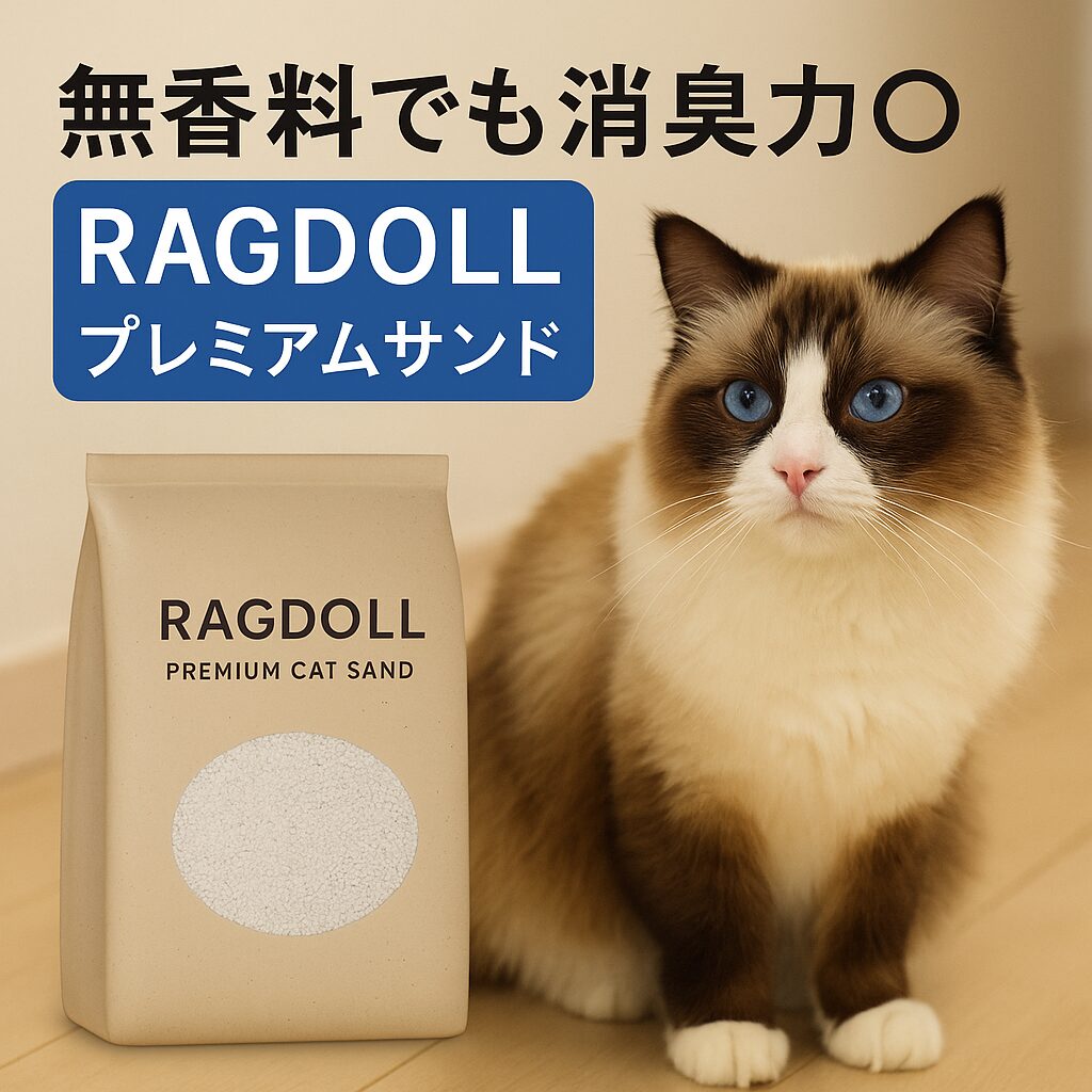 RAGDOLLプレミアムサンドは、SNSでもじわじわ人気が広がるプレミアム猫砂シリーズ。