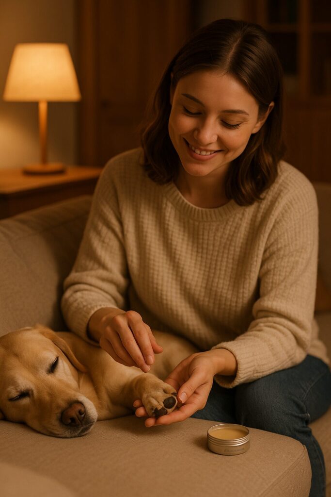 2️⃣ 指先に少量とって、肉球にやさしくなじませる