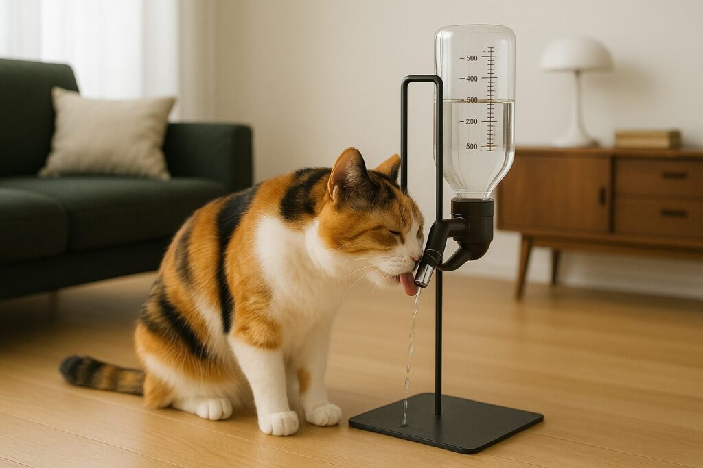 高さを無段階で調整できるので、猫の飲み姿勢もラクそう。